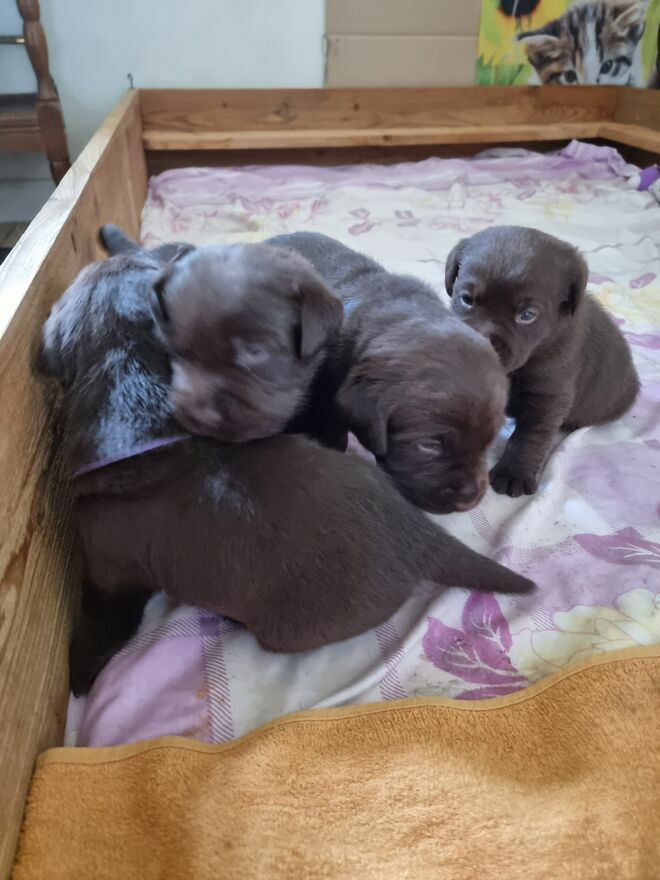 Planowany miot E na wrzesień 2025 i stało się dnia 16 września 2025 przyszły na świat piękne czekoladowe szczeniaczki Labrador Retriever 2 pieski i 2 sunieRodzice zdrowi,przebadani .