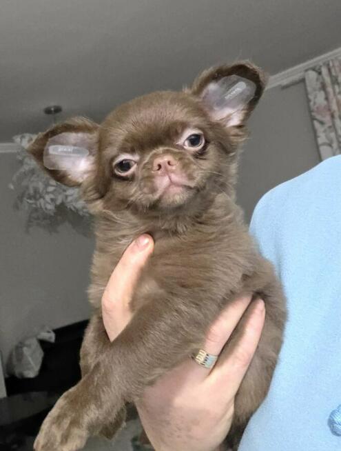 Oferuję przepiękną suczkę rasy Chihuahua długowłosa w rzadkim, czekoladowym umaszczeniu. Sunia urodzona 02.10.2025 ...